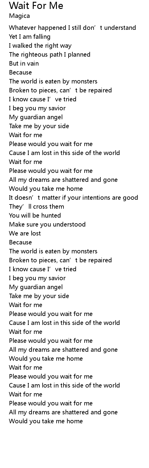 | [01:30.50] | Wait for me |