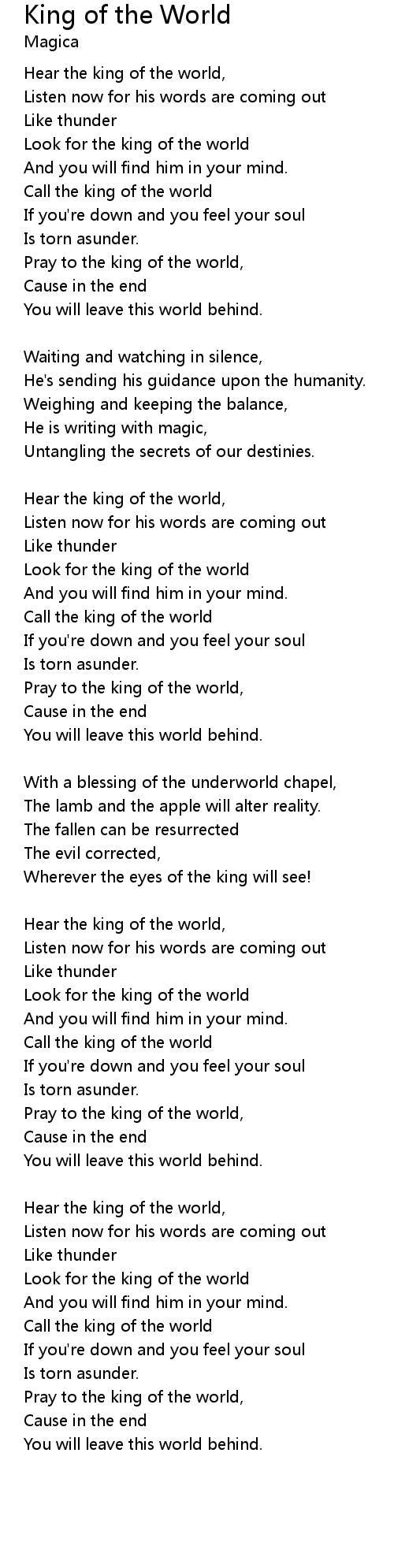 Hear the king of the world, |