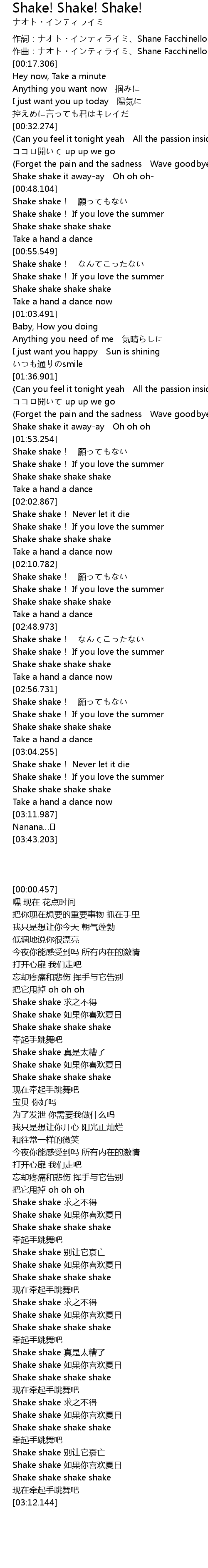| [00:44.395] | Shake shake it away-ay Oh oh oh- |