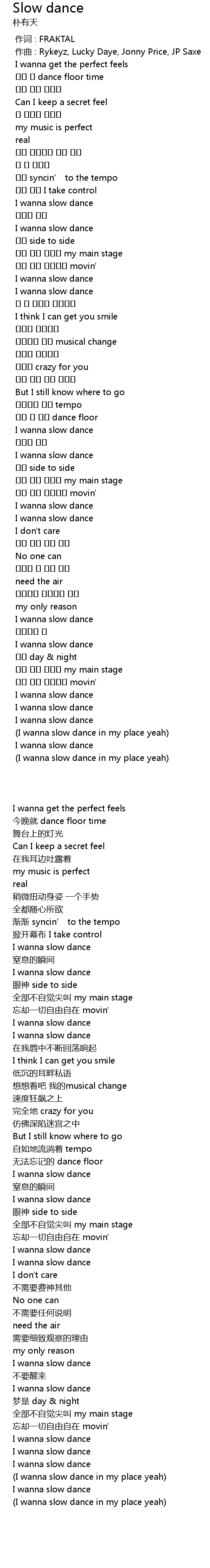 | [00:49.899] | I wanna slow dance |