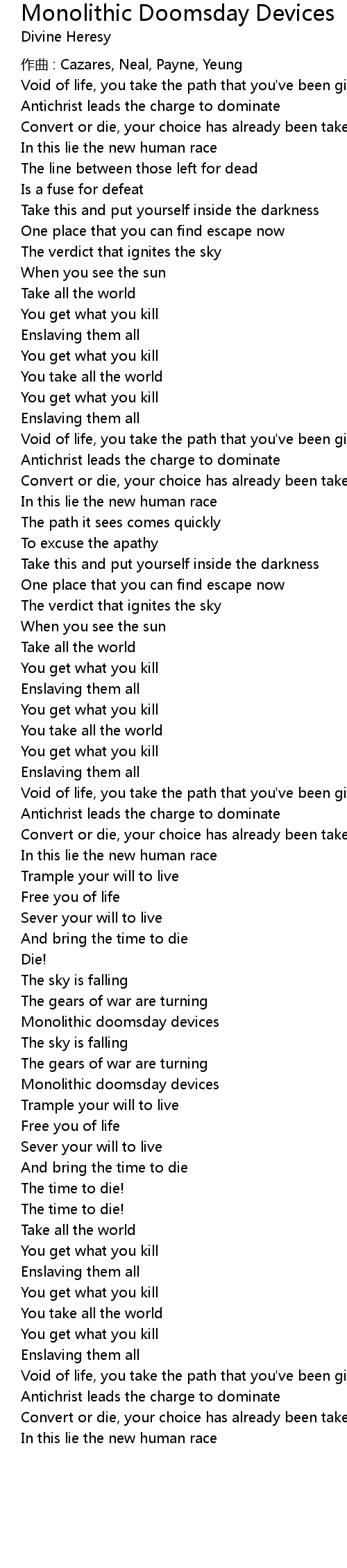 | Song | Monolithic Doomsday Devices |