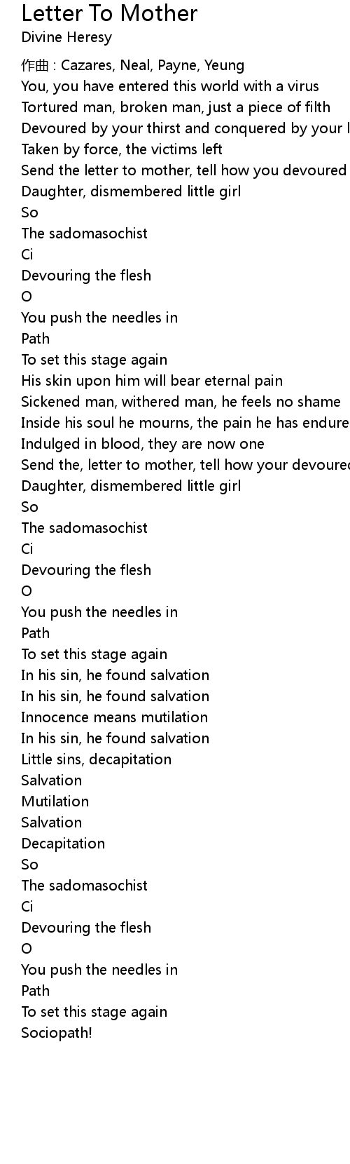 | Send the letter to mother, tell how you devoured | |
