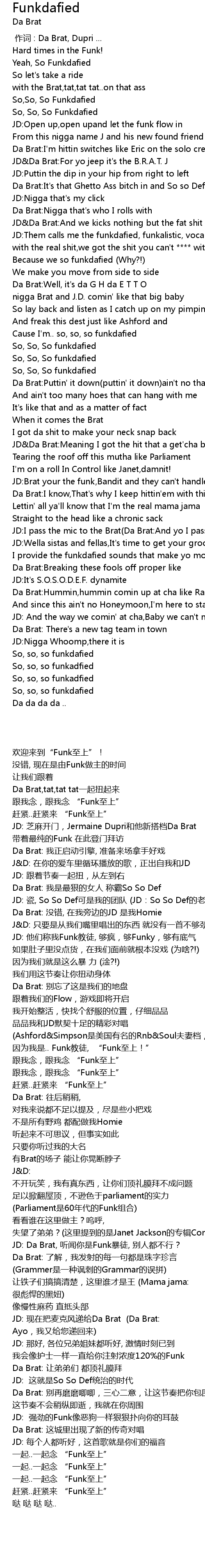 | [00:17.75] | So, So, So Funkdafied |