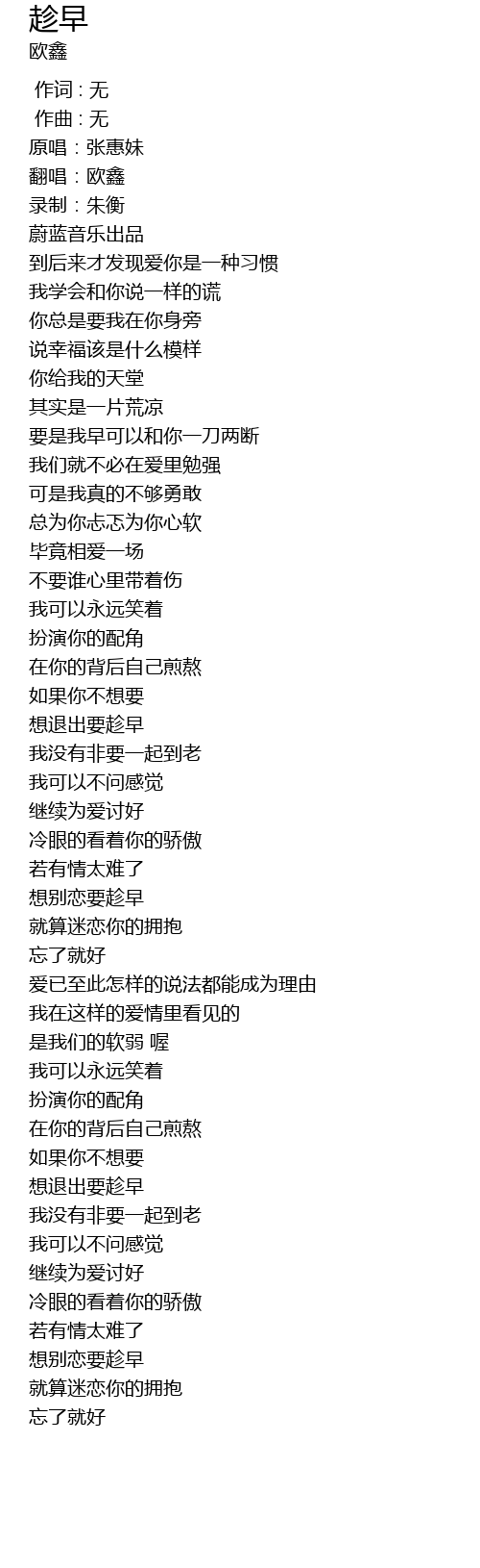 | [00:04.949] | 翻唱:欧鑫 |