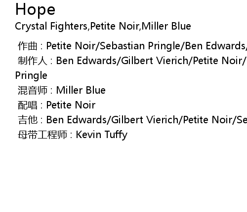 | [00:00.000] | 制作人 : Ben Edwards/Gilbert Vierich/Petite Noir/Sebastian Pringle |