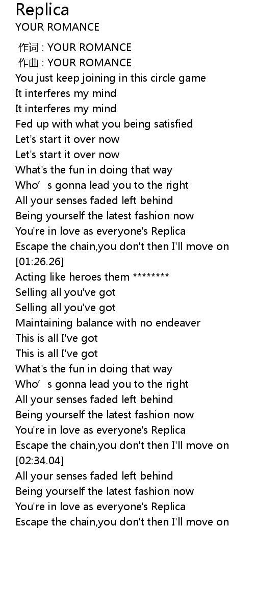 | [02:16.58] | You' re in love as everyone' s Replica |