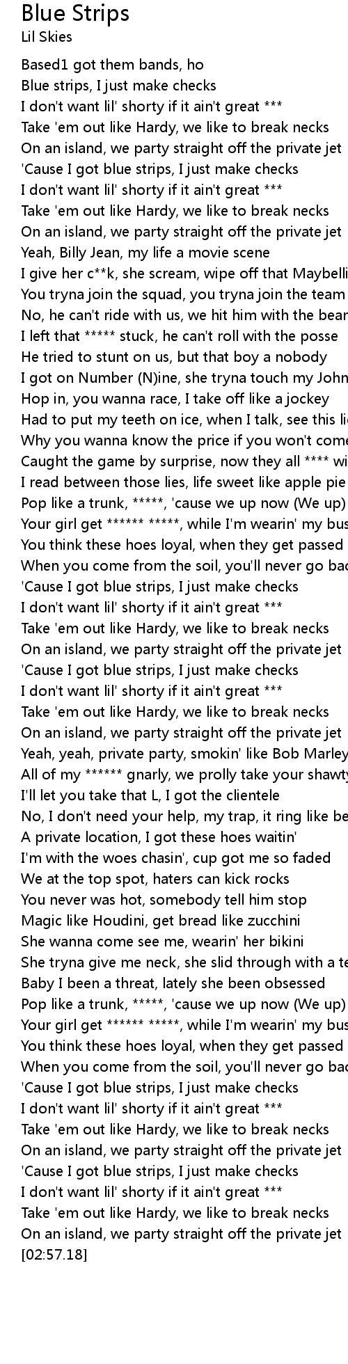 | [02:24.58] | Your girl get ****** *****, while I'm wearin' my bustdown (She suck) |