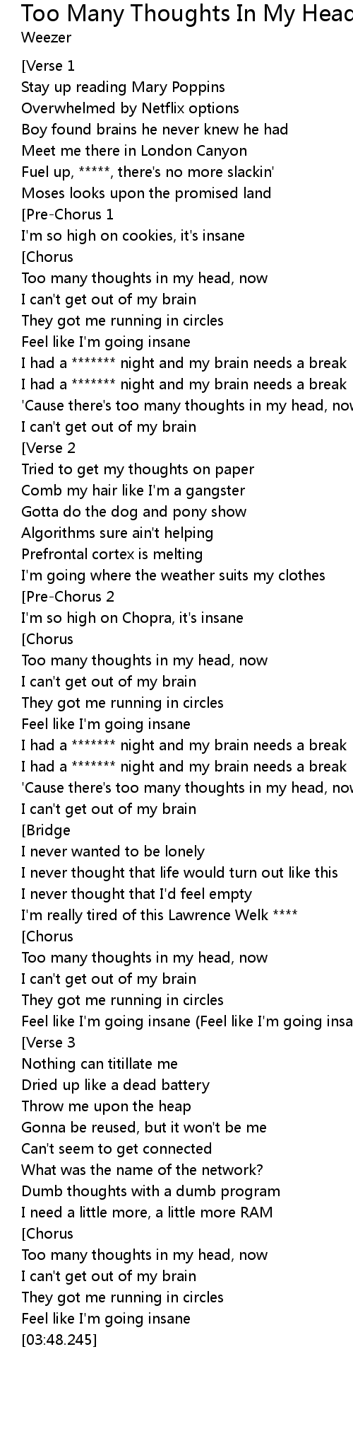Too many thoughts in my head, now |