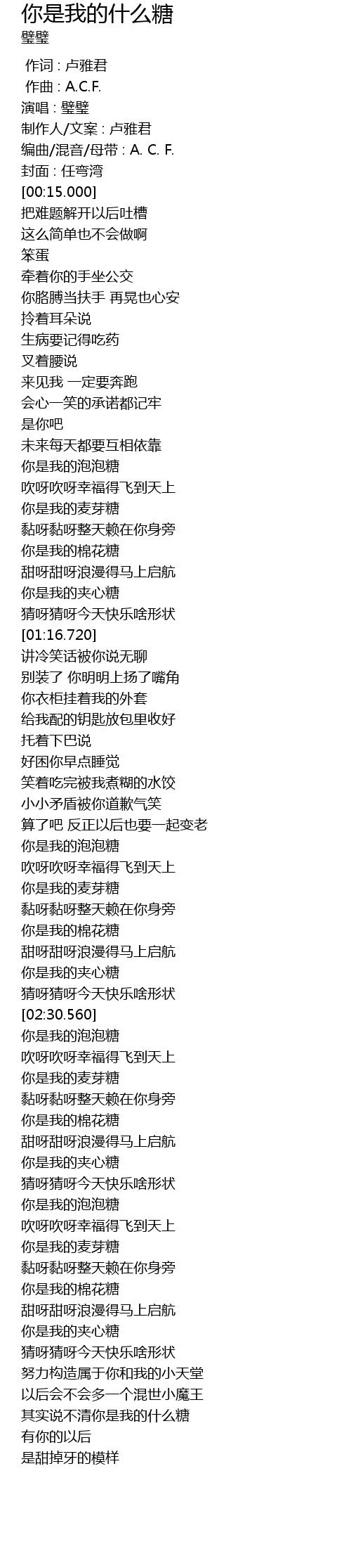 | [03:56.380] | 其实说不清你是我的什么糖 |