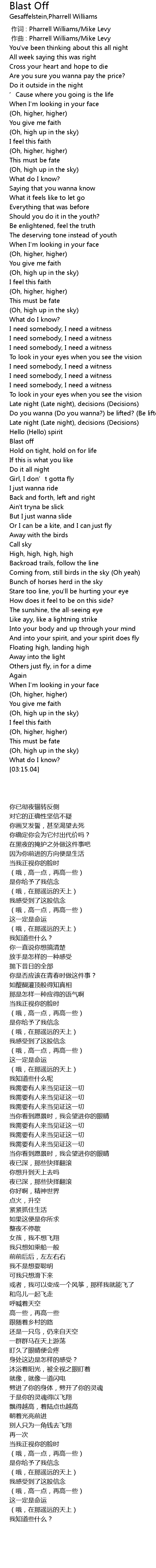 | [00:00.000] | 作词 : Pharrell Williams/Mike Levy |