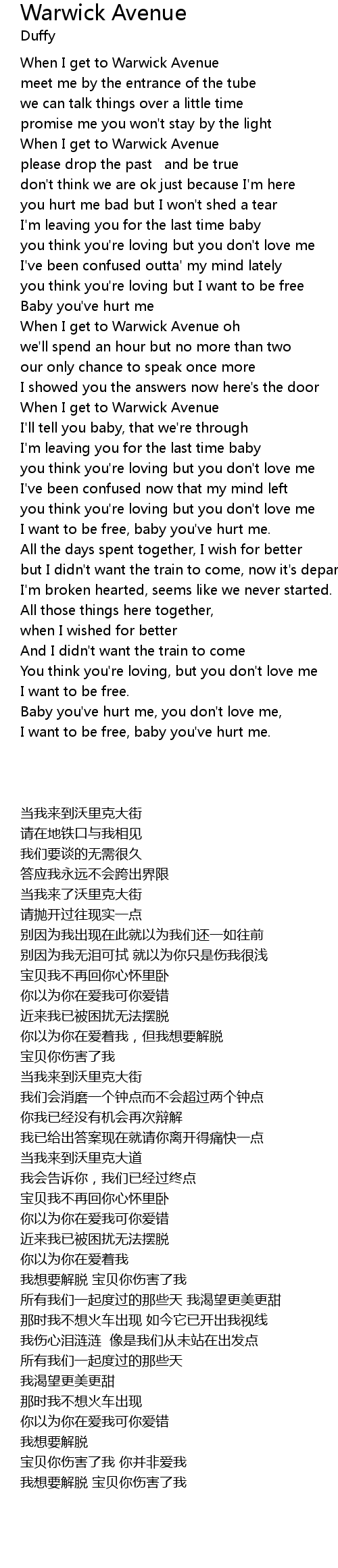| [01:31.780] | When I get to Warwick Avenue oh |