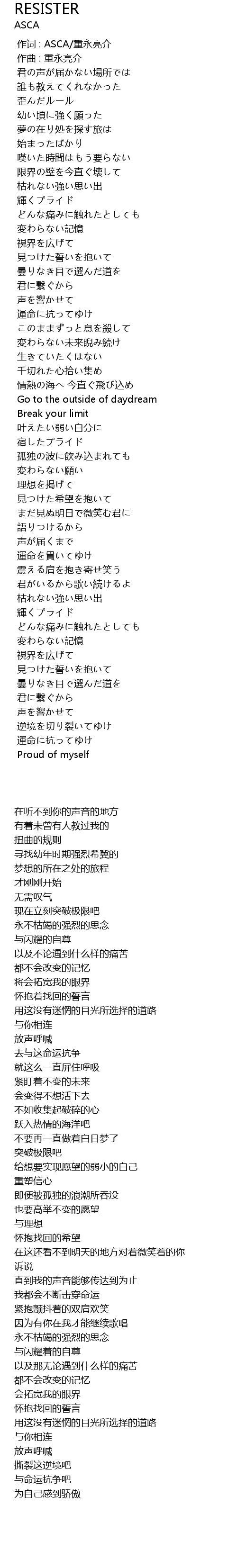 | Song | RESISTER |