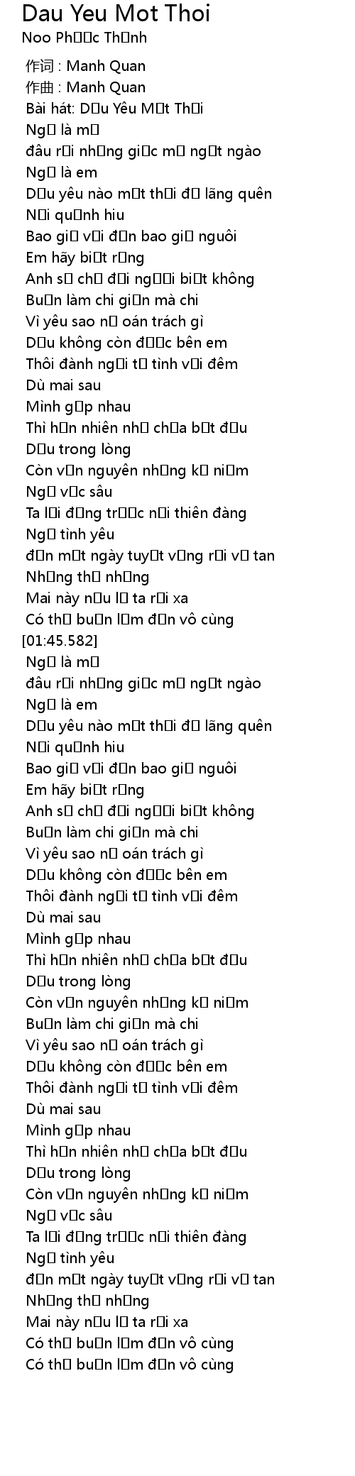 | [00:00.000] | 作词 : Manh Quan |