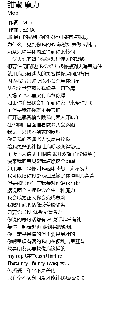 | [00:59.353] | 快来我的宝贝帮我点燃这个beat |