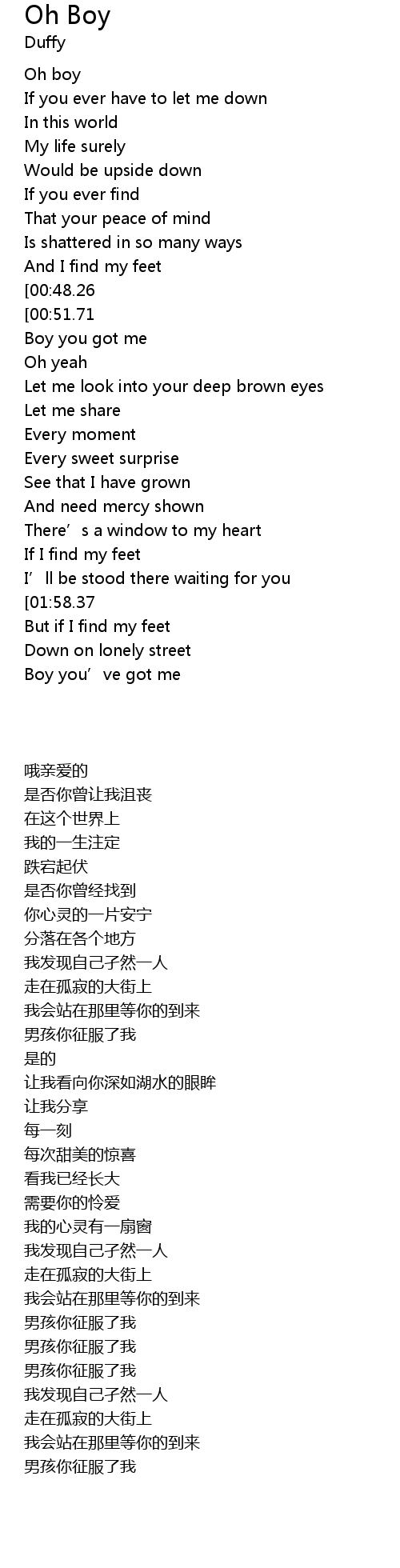 | [01:45.17][00:48.26] | Down on lonely street |