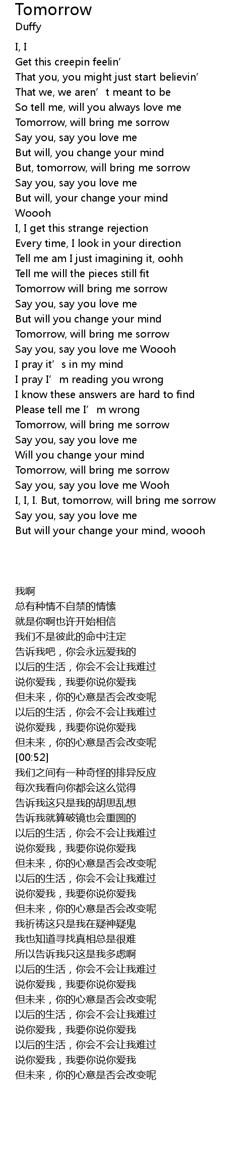 | [00:42] | But, tomorrow, will bring me sorrow |