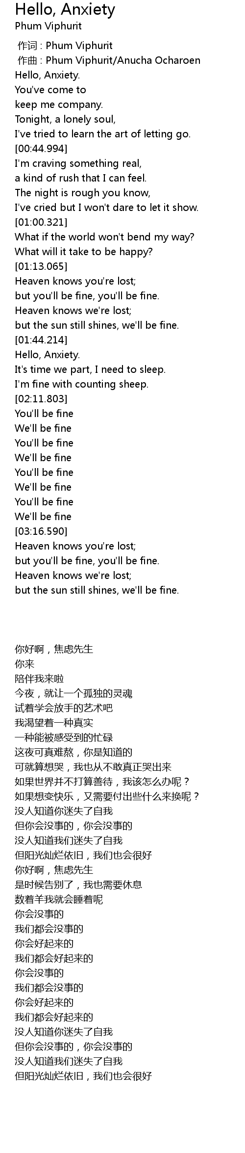 | [00:29.992] | Hello, Anxiety. |