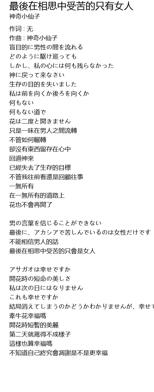 | zuì hòu zài xiāng sī zhōng shòu kǔ de zhǐ huì shì nǚ rén | |