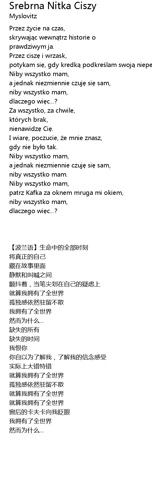 | [01:54.19] | a jednak niezmiennie czuj si sam, |