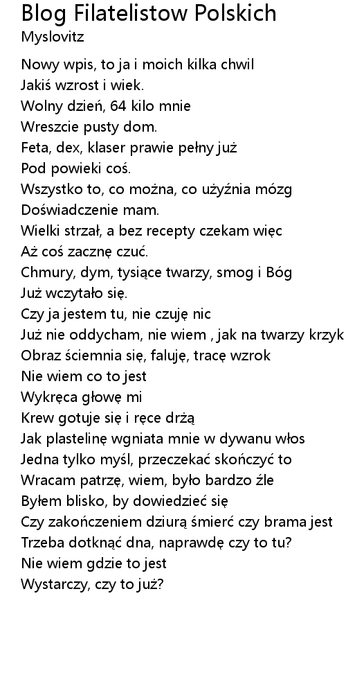 | [02:16.37] | Chmury, dym, tysi ce twarzy, smog i Bó g |