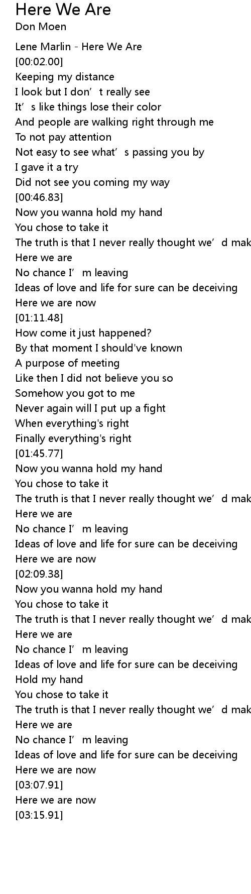 | [00:55.05] | The truth is that I never really thought we’d make it |