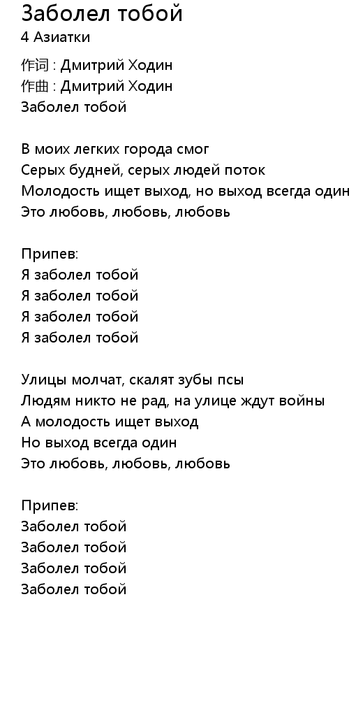 | Song | Заболел тобой |