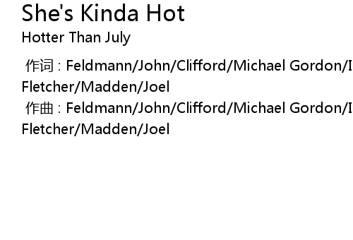 | [00:00.000] | 作词 : Feldmann/John/Clifford/Michael Gordon/Irwin/Ashton Fletcher/Madden/Joel |