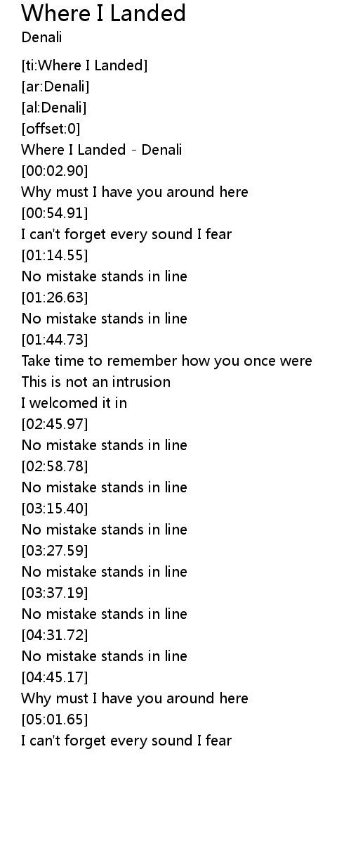 | [00:01.82] | Where I Landed - Denali |