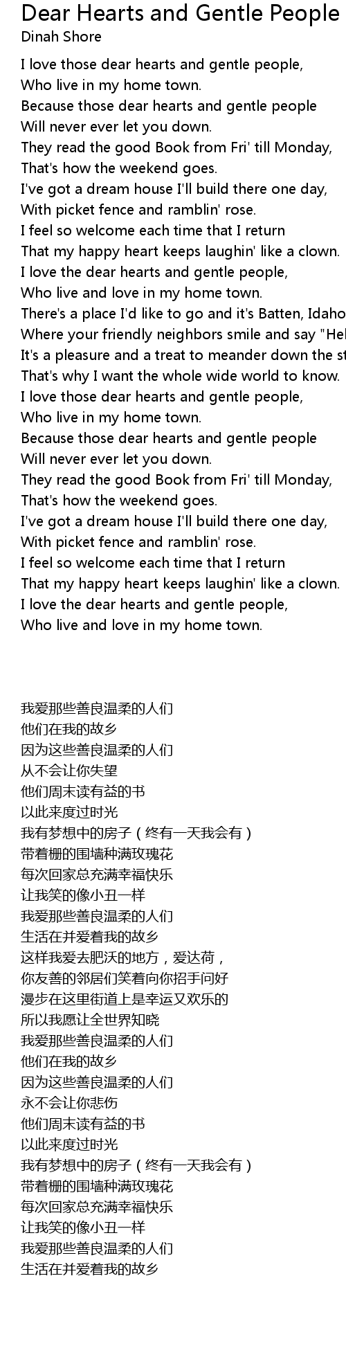 I love the dear hearts and gentle people, |