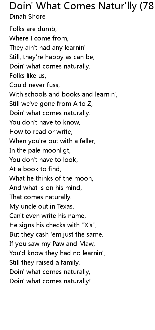 Doin' what comes naturally, |