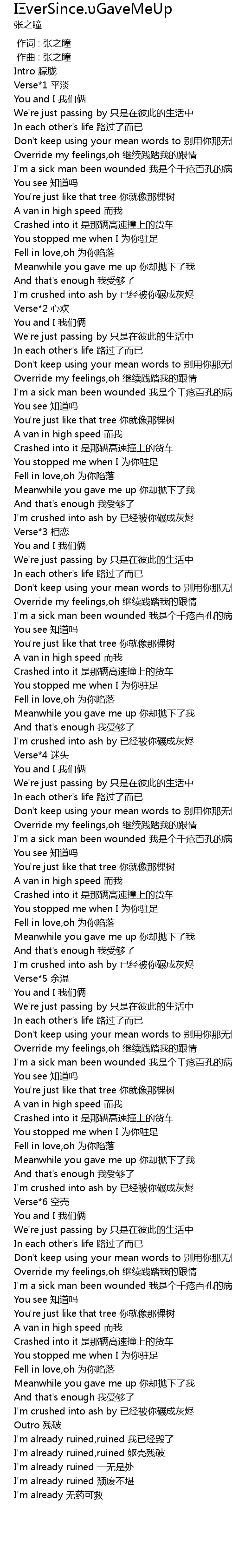 | [00:58.382] | Meanwhile you gave me up 你却抛下了我 |