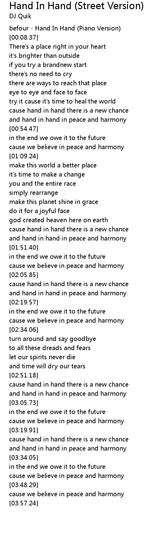 and hand in hand in peace and harmony |