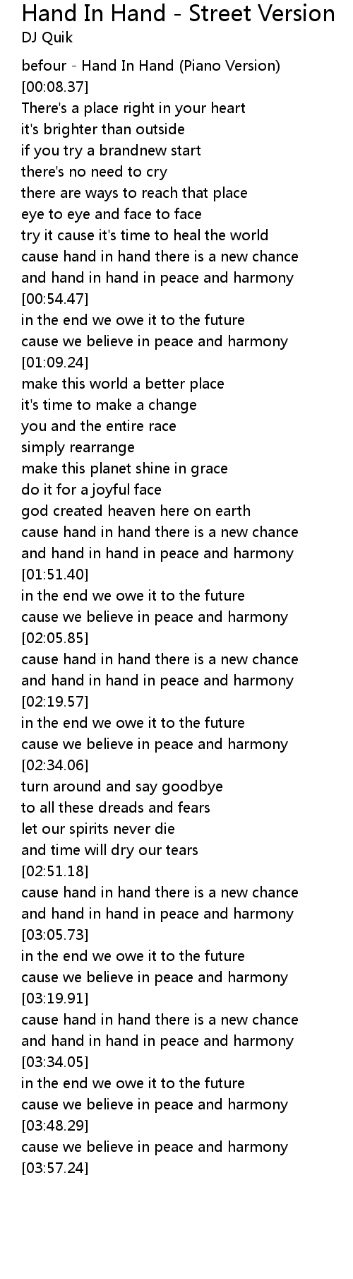 and hand in hand in peace and harmony |