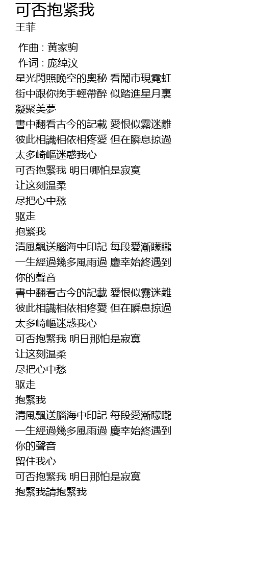 | [02:57.800] | 可否抱緊我 明日那怕是寂寞 |
