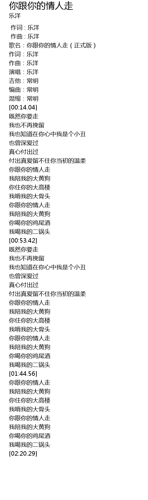 | [00:00.99] | 歌名:你跟你的情人走(正式版) |