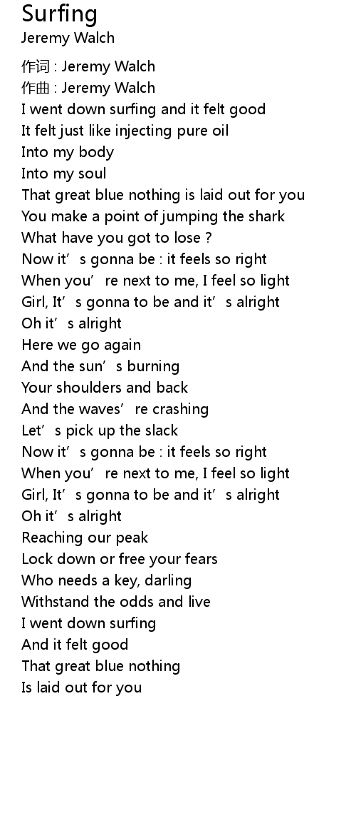 | I went down surfing and it felt good | |