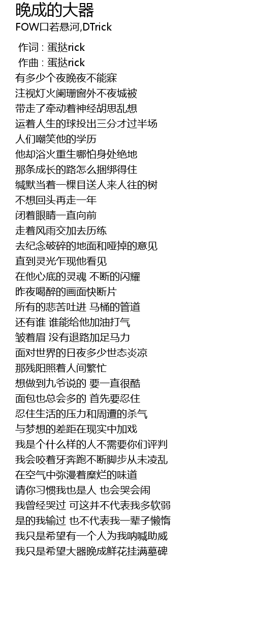 | [01:50.383] | 我只是希望大器晚成鲜花挂满墓碑 |