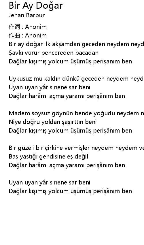 | Bir ay do ar ilk ak amdan geceden neydem neydem geceden | |