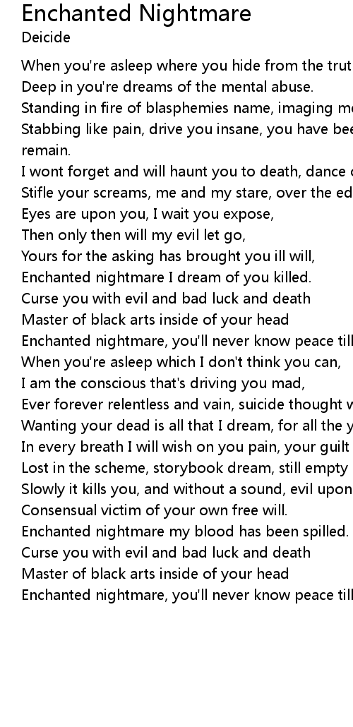 Wanting your dead is all that I dream, for all the years that you ruined for me. |