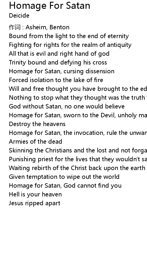 | Homage for Satan, sworn to the Devil, unholy master | |