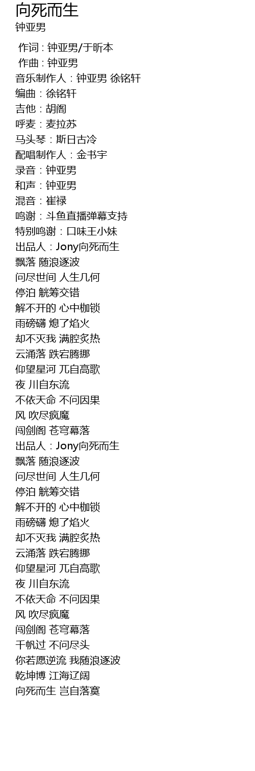 | [00:00.001] | 音乐制作人:钟亚男 徐铭轩 |