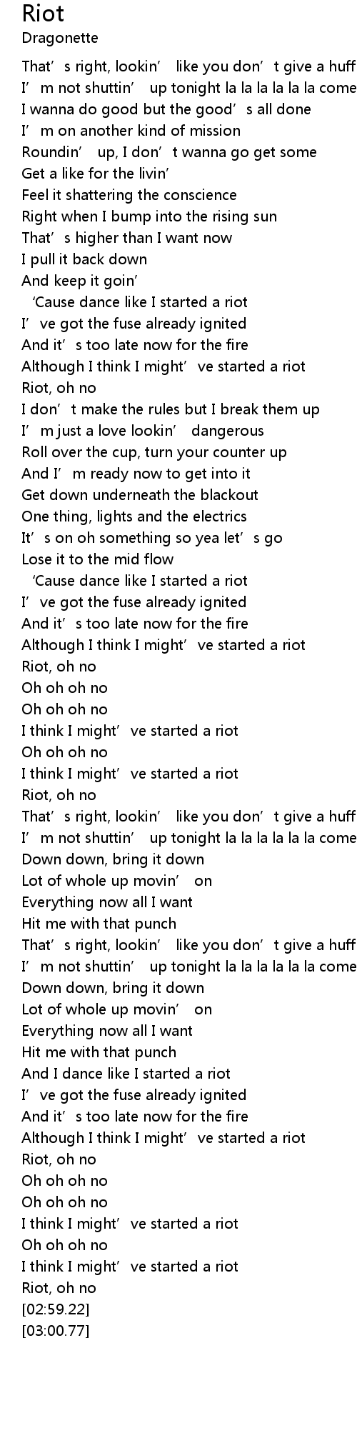 | [01:27.30] | ‘Cause dance like I started a riot |
