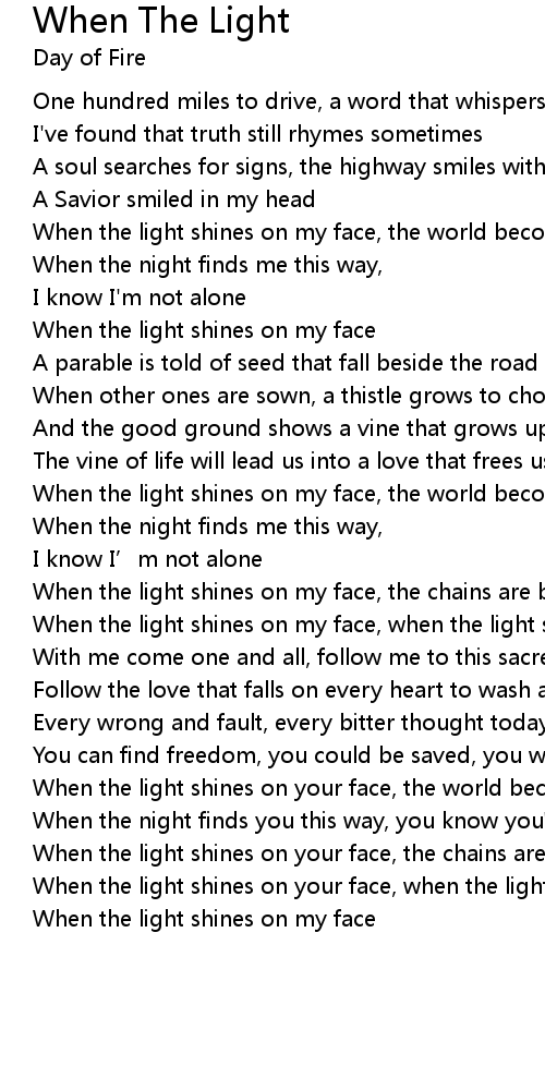 | When the light shines on your face, when the light shines on your face | |
