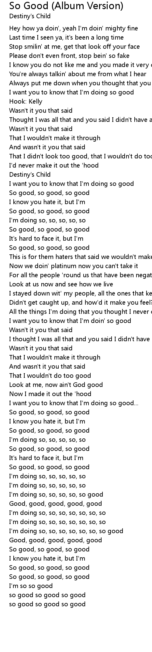 I'm doing so, so, so, so, so, so, so good |