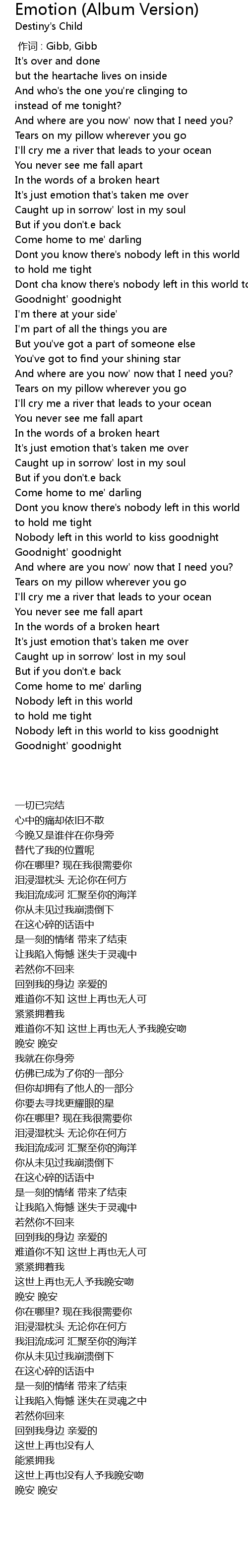 | [00:00.00] | 作词 : Gibb, Gibb |
