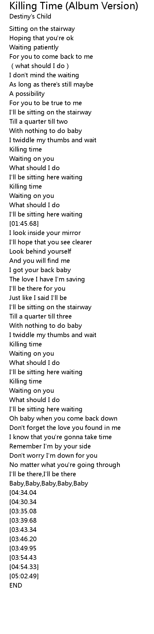 | [04:46.02][04:34.04][04:26.94][03:57.54][03:29.75] | Killing time |
