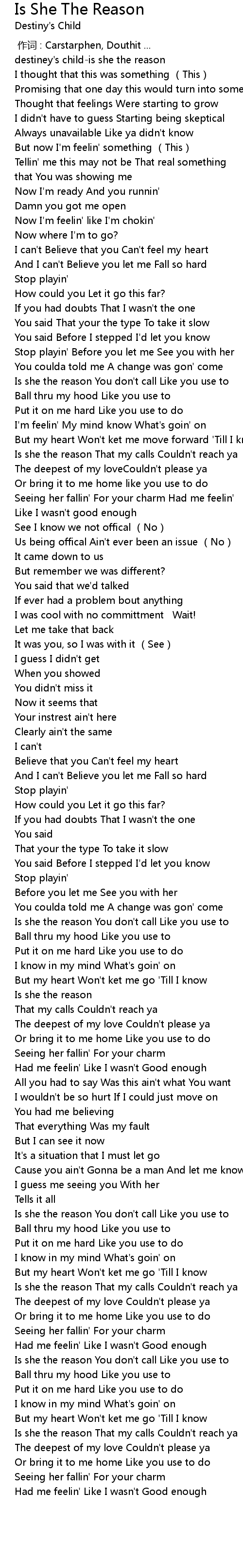 | [01:17.11] | Is she the reason You don't call Like you use to |