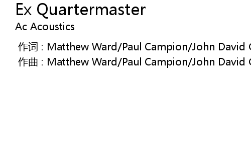 | [00:00.000] | 作词 : Matthew Ward/Paul Campion/John David Gormley/Caz Riley |