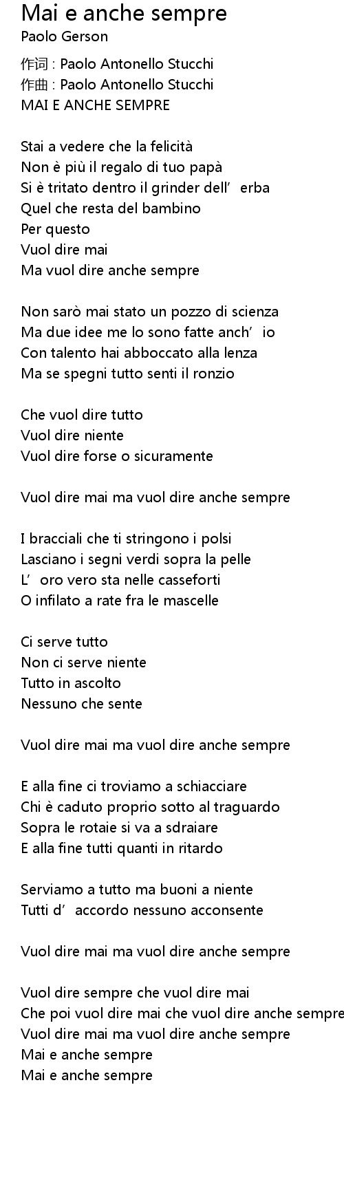 | Che poi vuol dire mai che vuol dire anche sempre | |