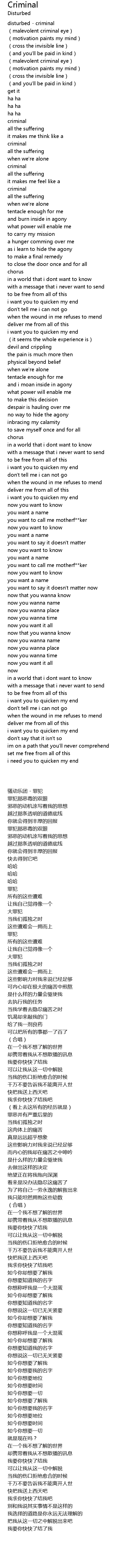 | [00:01.63] | disturbed - criminal |